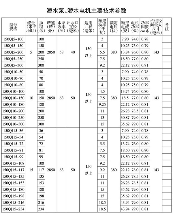 150/ 額定揚(yáng)程: 150 米